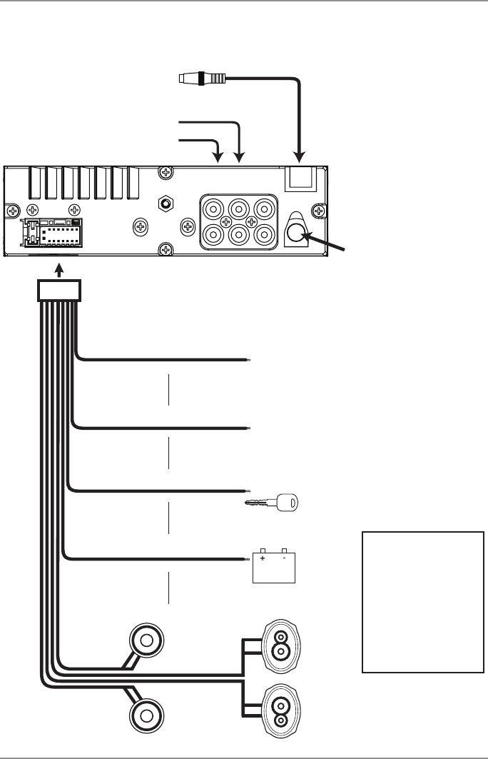 • Connect wiring harness and antenna. Consult a qualified technician if you are unsure.