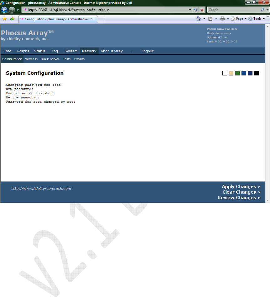 4. The System Configuration screen will display progress as the password is