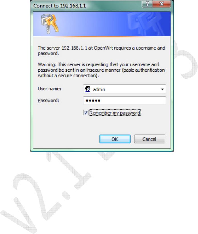 2. Type admin for the User name and your administered password for the