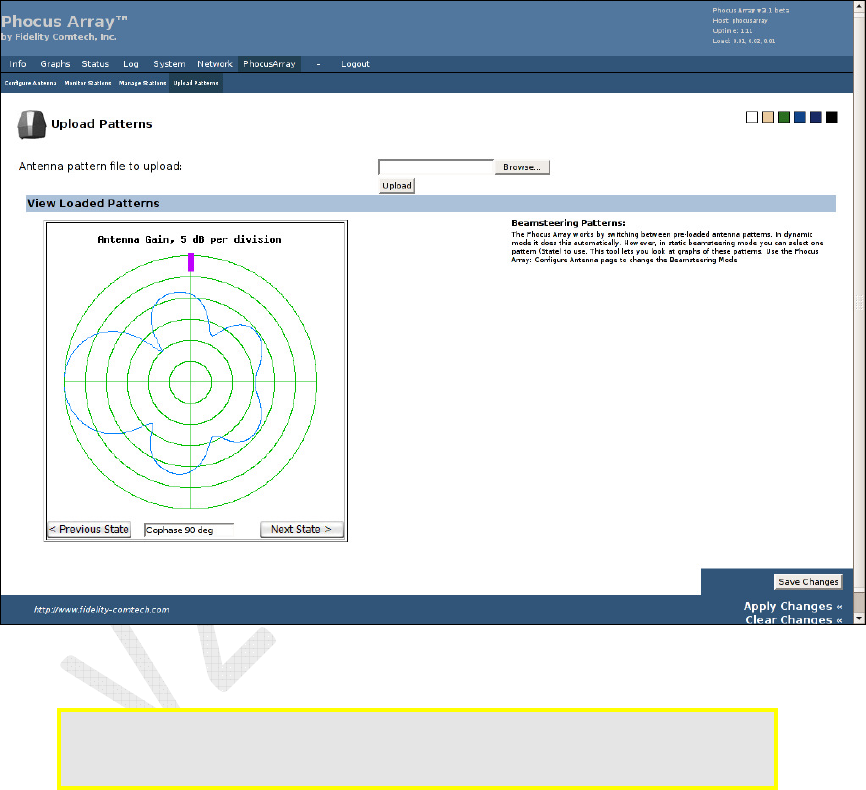 Use this screen to upload custom antenna pattern files, and to view pre-loaded
