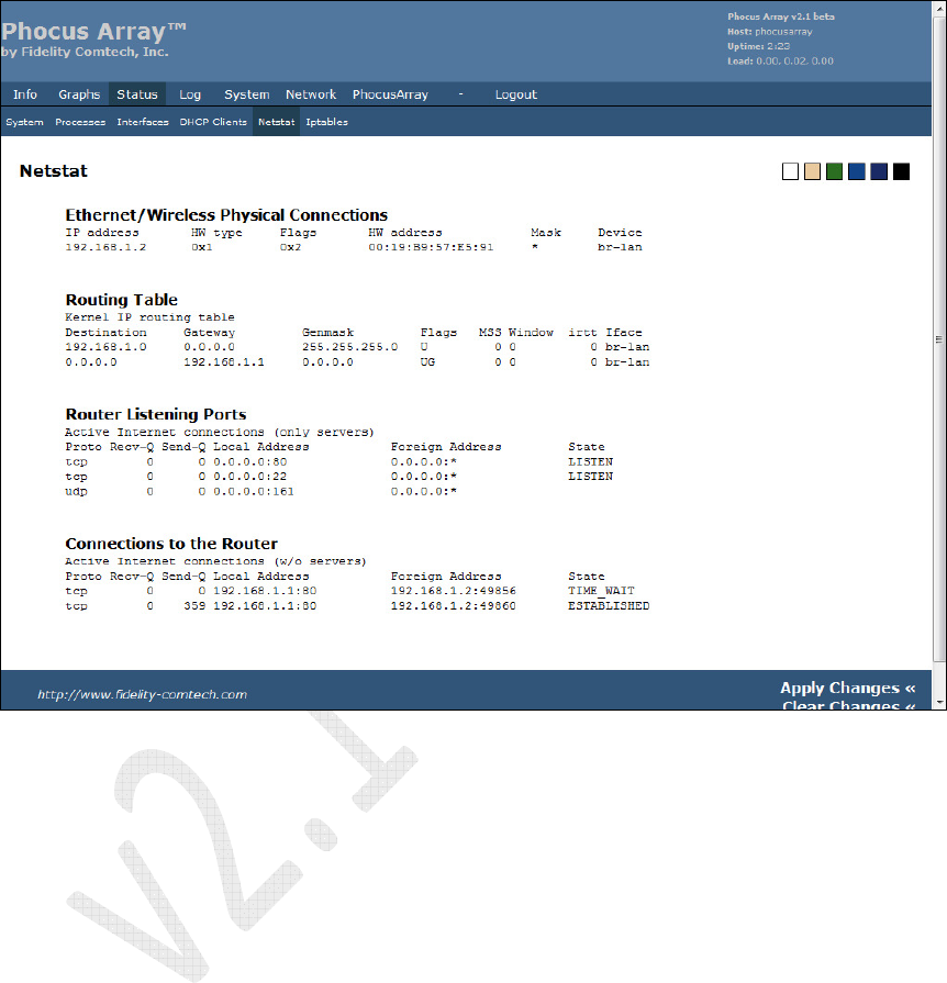 The screen displays Ethernet/Wireless Physical Connections, Routing Table,