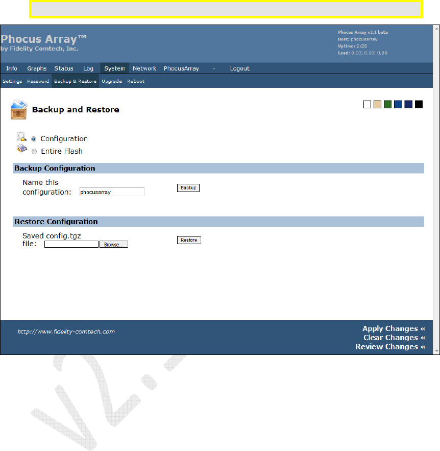 • Backup and Restore – options to backup or restore configuration and