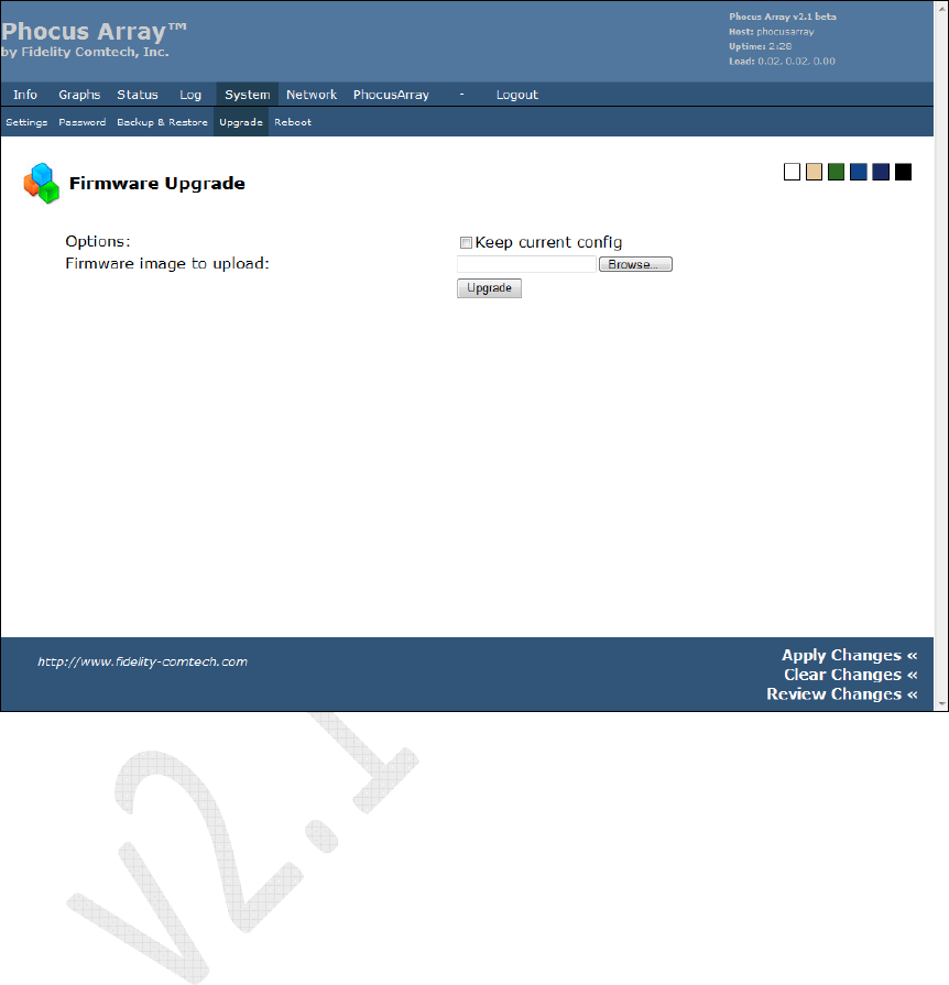 Use this screen to upload Phocus Array System firmware UpDates or UpGrades when