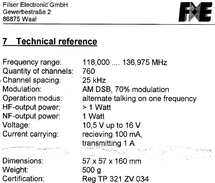 Filser Electronic GmbH Aeronautical Transceiver