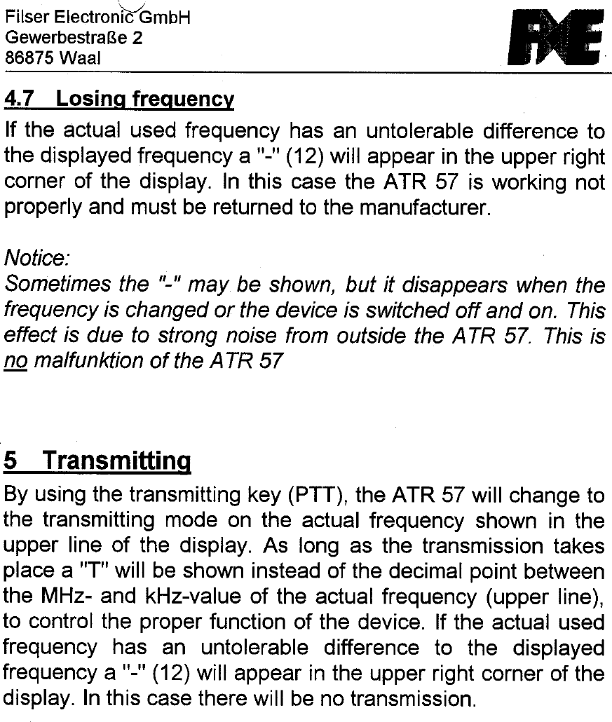 Filser Electronic ATR57COM Aeronautical Transceiver User Manual