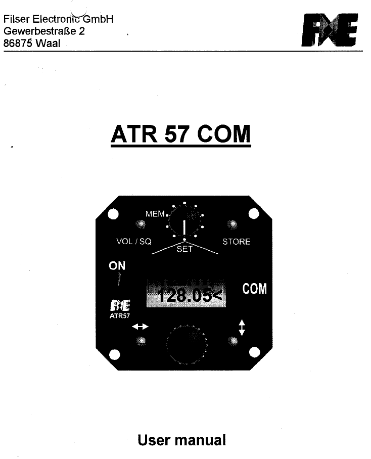 Filser Electronic ATR57COM Aeronautical Transceiver User Manual