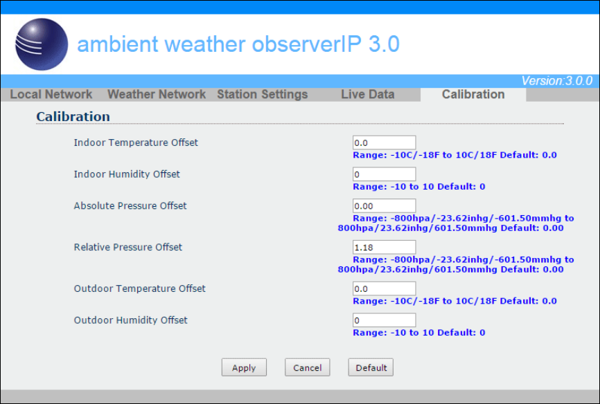 Barometric Pressure 8.85 to 32.50 inHg ± 0.08 inHg (within range of