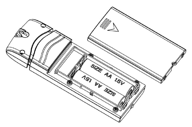 Remove the battery door on the back of the sensor by sliding off the battery door. Insert two AA