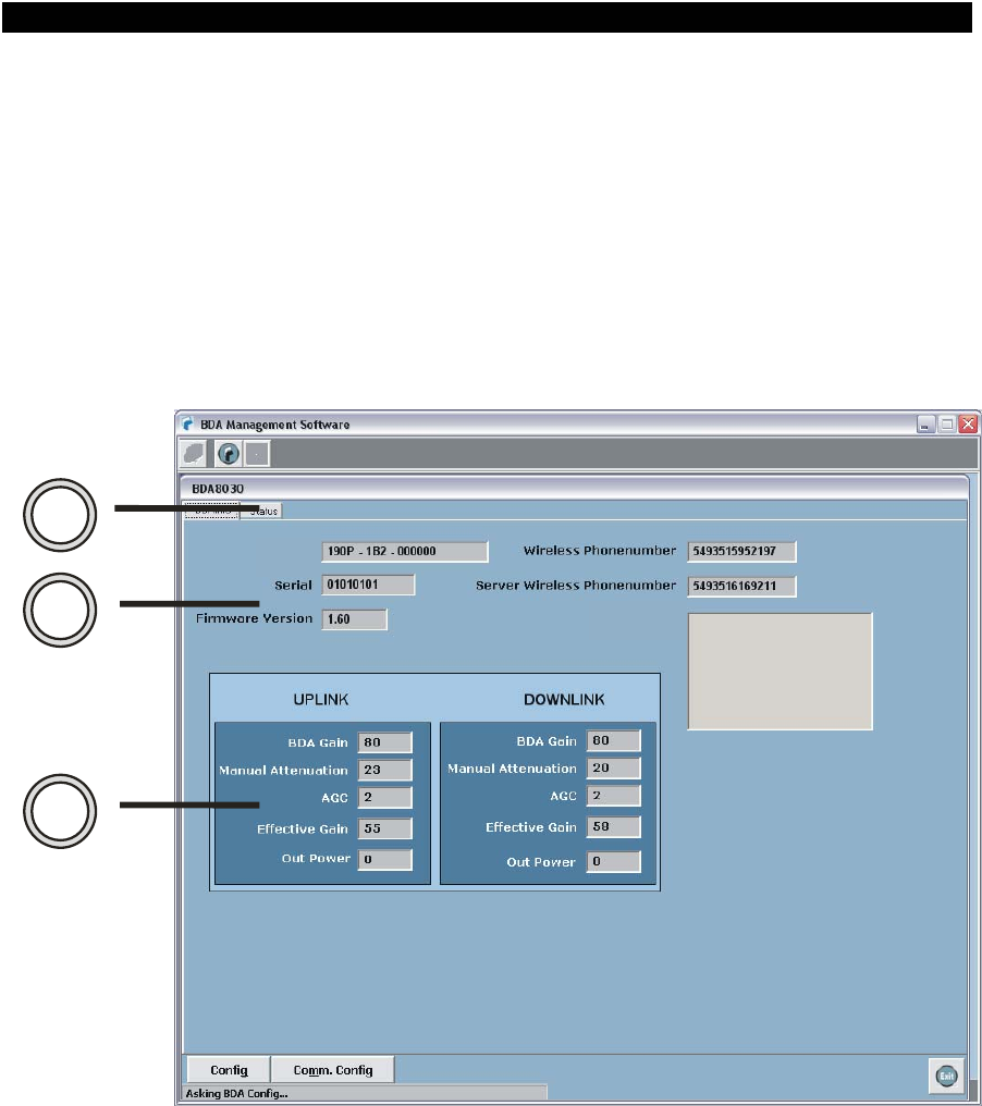 firmware version, the BDA mobile number (Wireless Phone Number) and the Server