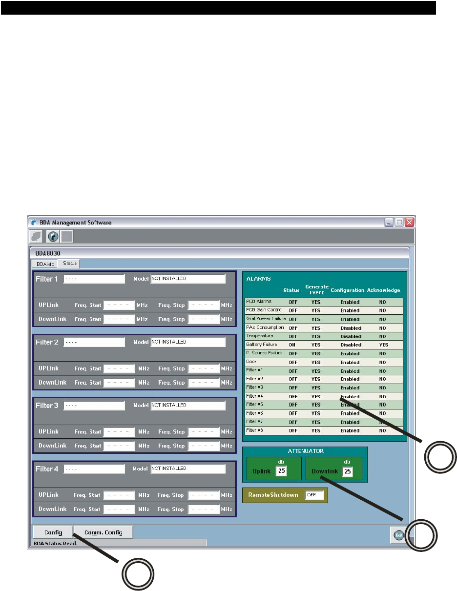 attenuation, alarms, remote shutdown and/or Heterodyne filter configurations (if present).