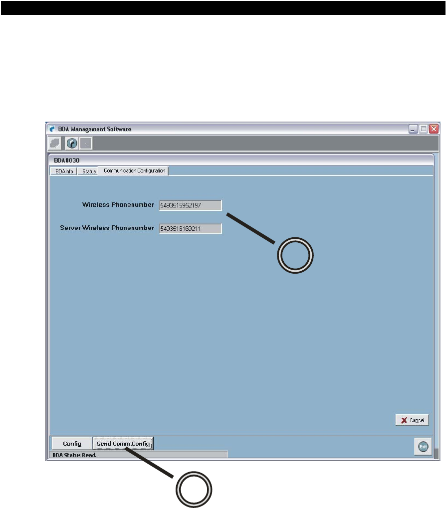number of the modem installed in the BDA, and the Server Wireless Phone number which