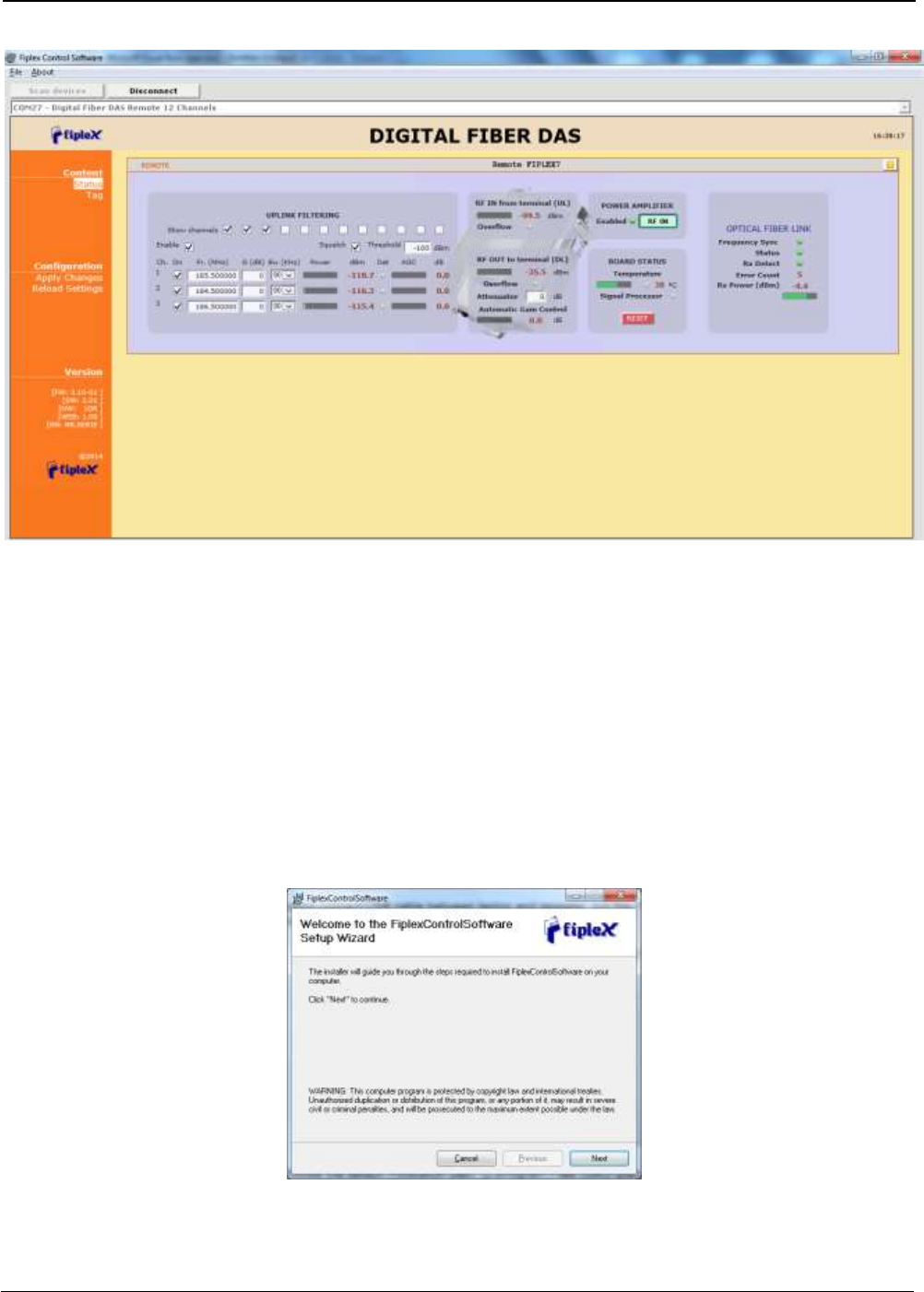 11. Remote unit can be controlled through USB port. In this case, Fiplex Control Software will