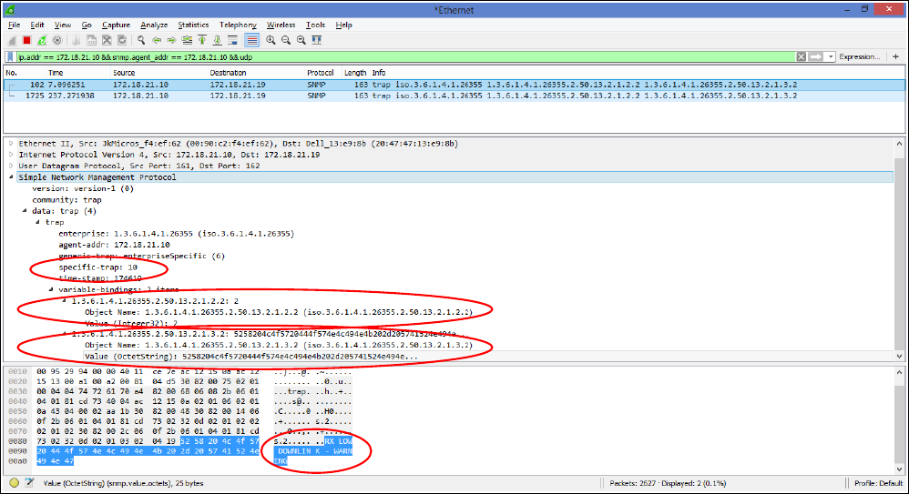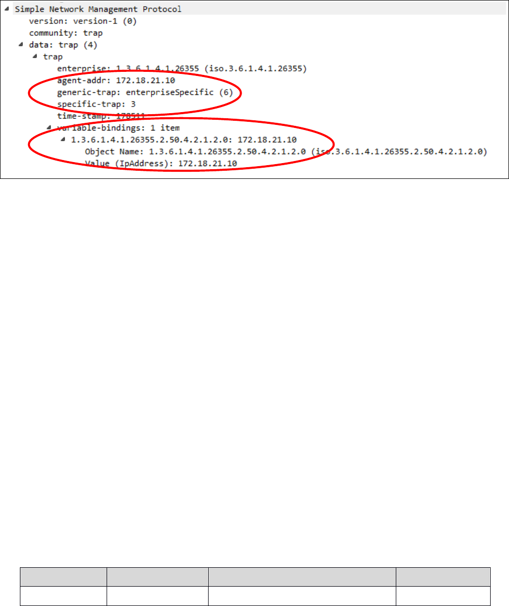 following picture shows a snapshot of a trap receiver getting traps from a unit at address