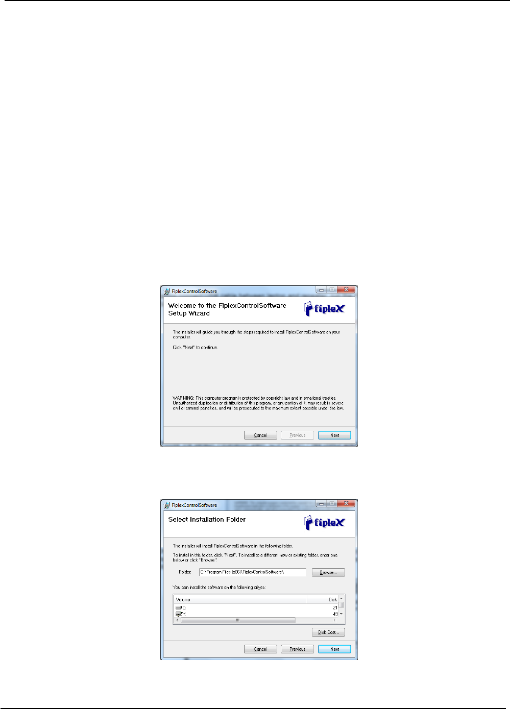 The following section will describe the steps to be followed in order to install and use the Fiplex Control software