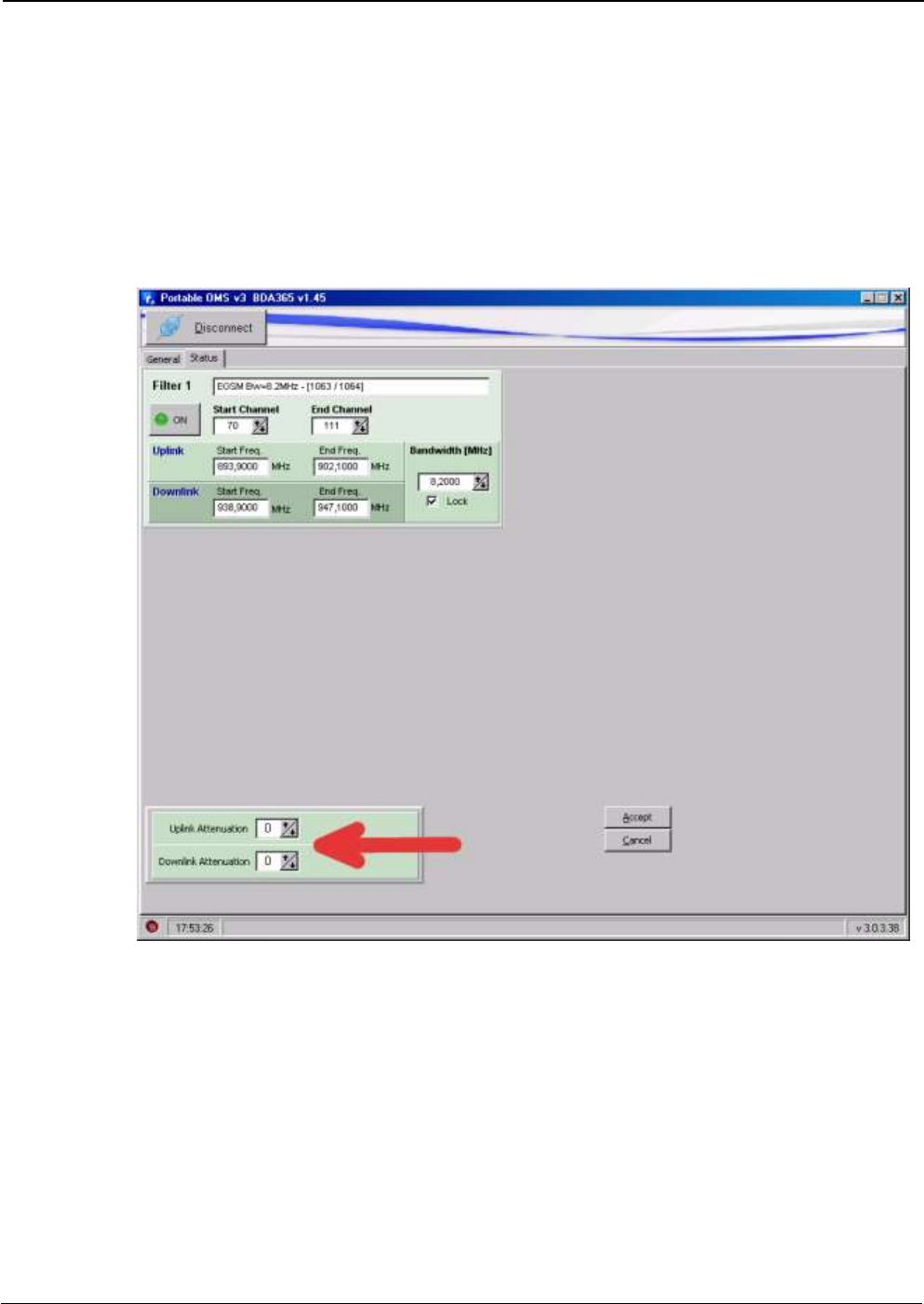Manual attenuation: shows the status of uplink and downlink attenuation.