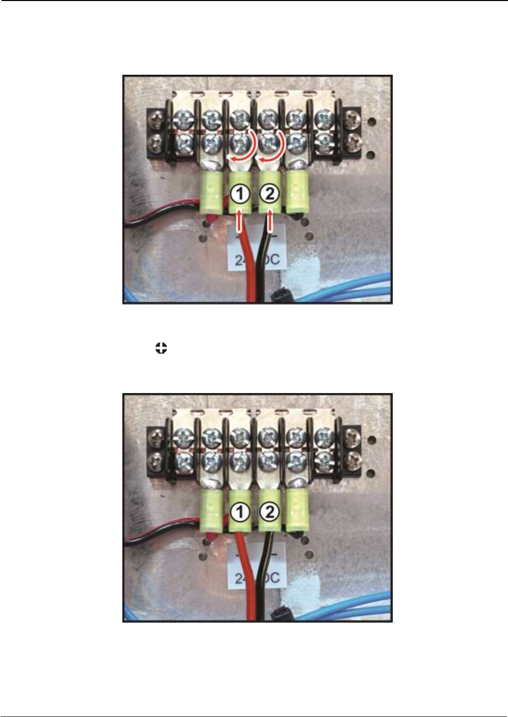 Verify that there is no short circuit between terminals 24VDC(1 & 2)