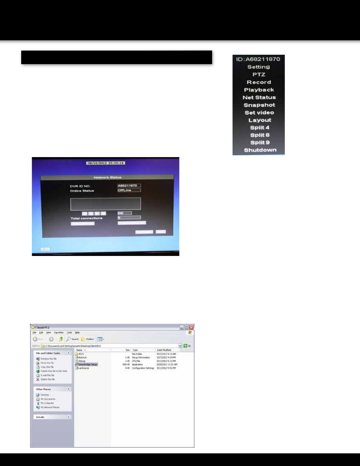 This manual is written for the SmartBridge™ DVRA0405/DVRA0805/DVRA0810/DVRA1610 DVRs. It was