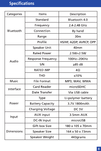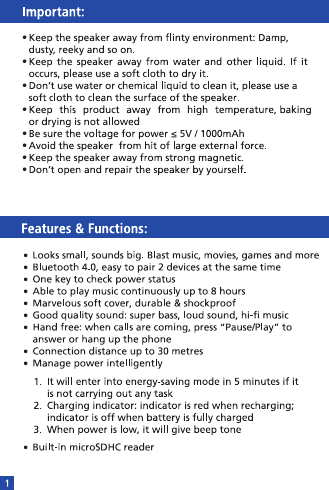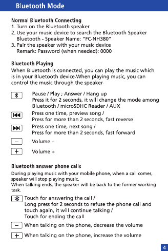 First Champion Technology NH380 Bluetooth Speaker User Manual NB18 Manual 58x90mm 20pp Outline