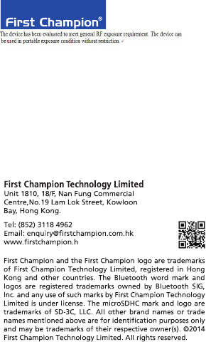 First Champion Technology Limited Bluetooth Speaker NB18 Manual 58x90mm 20pp Outline