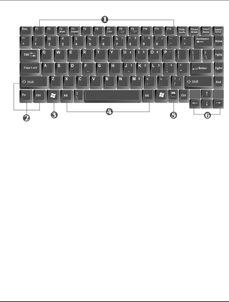 cursor keys, 5 hot keys, 12 function keys, and embedded numeric keypad