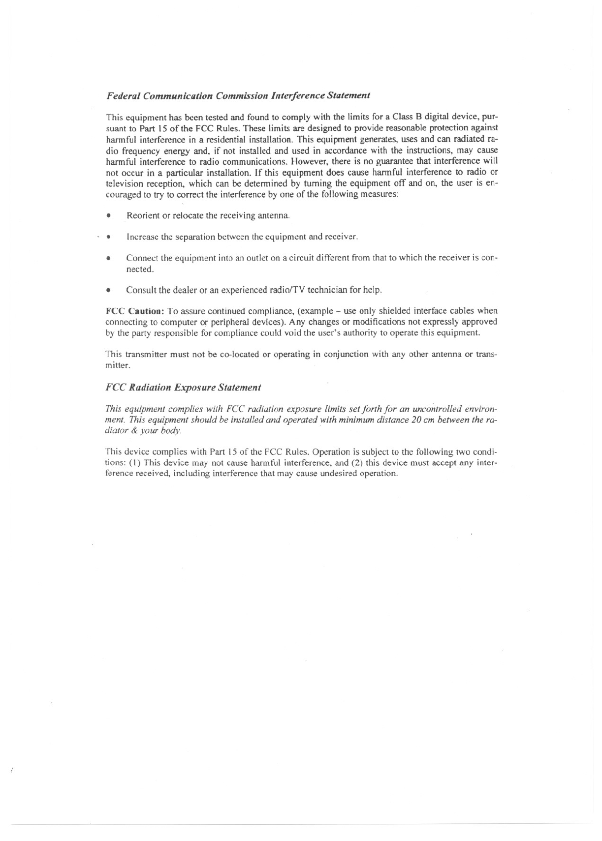 not expressly approved by FIC may void the user’s