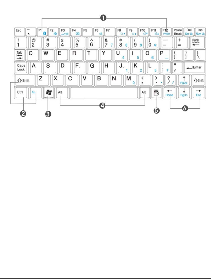 cursor keys, 10 hot keys, 12 function keys, and embedded numeric keypad
