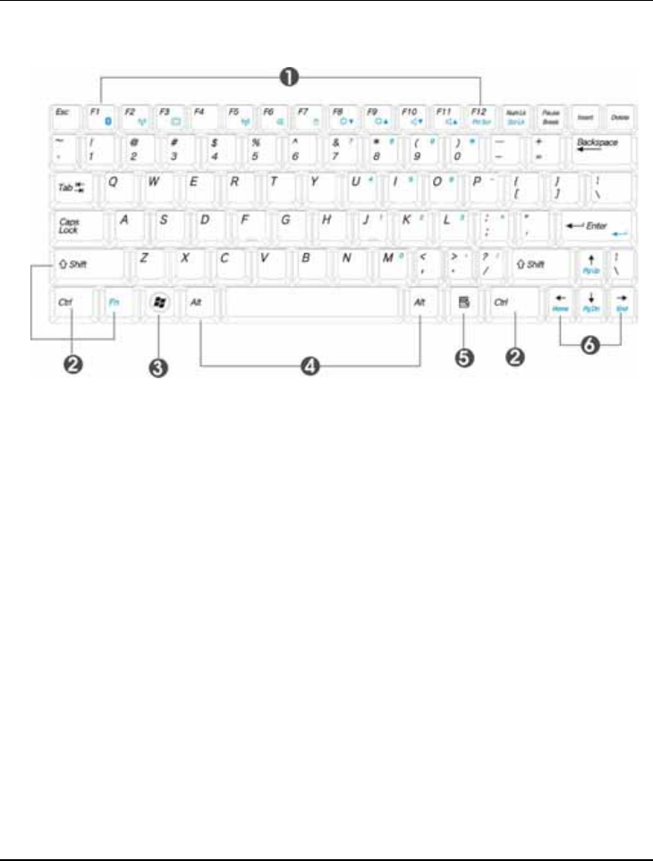 cursor keys, 10 hot keys, 12 function keys, and embedded numeric keypad