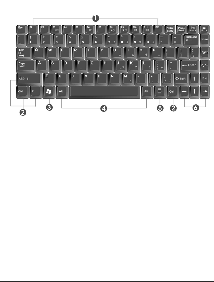 cursor keys, 6 hot keys, 12 function keys, and embedded numeric keypad