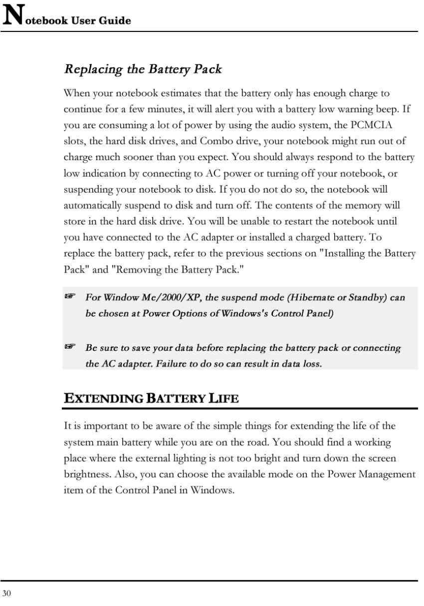 • Your notebook runs on Intel Pentium® M microprocessor which is