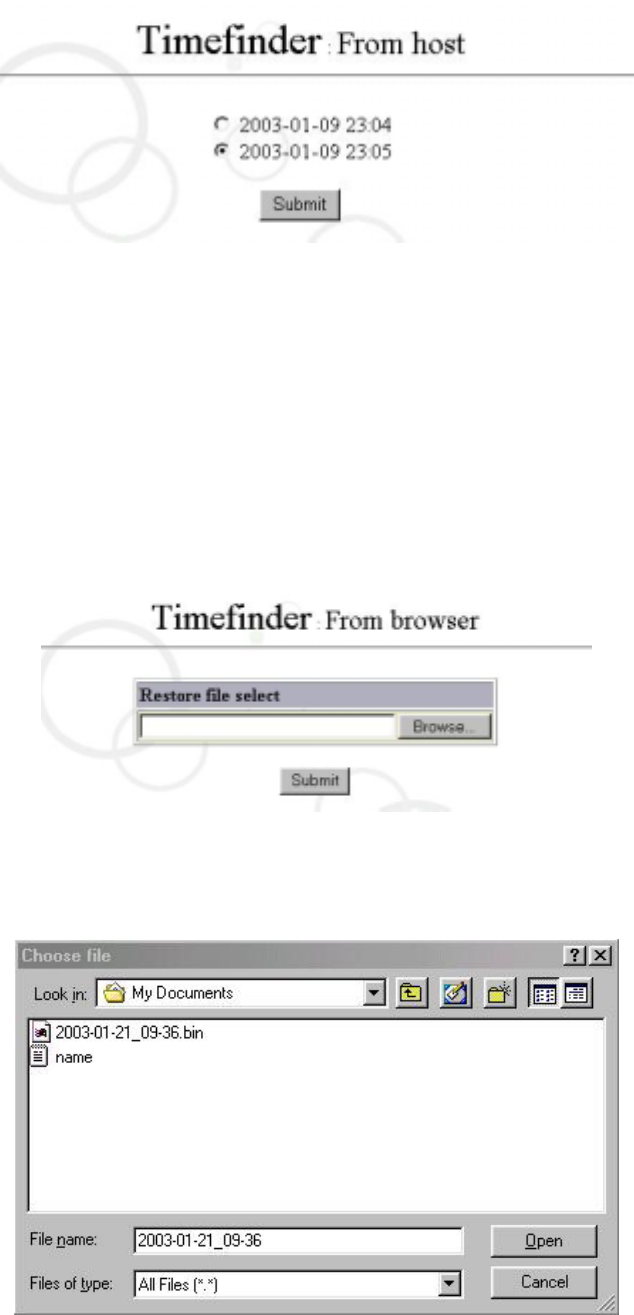 Click on the time you want to restore and click ” Submit”. This means “Timefinder from