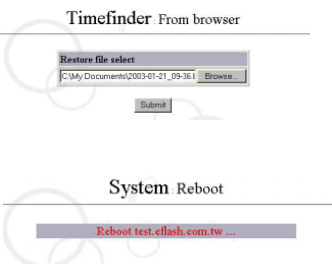 Click ” Submit” to begin restoring files. When it has finished, the system will reboot.