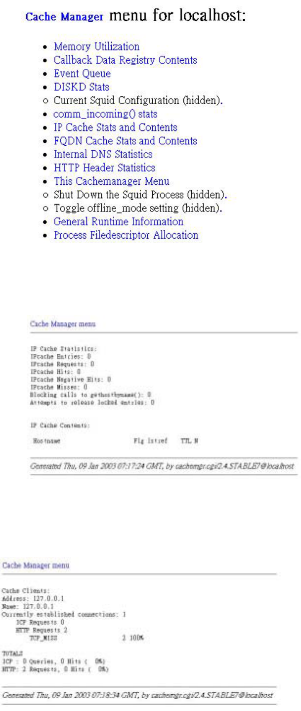 1. IP Cache Stats and Contents – shows all of the websites visited by the client-end
