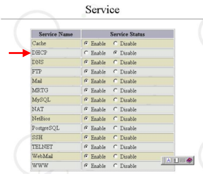 Click “Service” in the “System Management Tools” screen and select Enable for “DHCP”