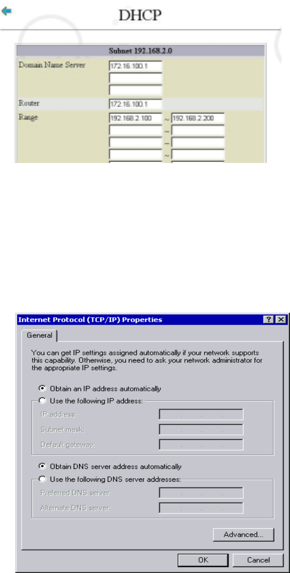 In the NIC Configure screen with DHCP of 192.168.2.0 as shown below, we have