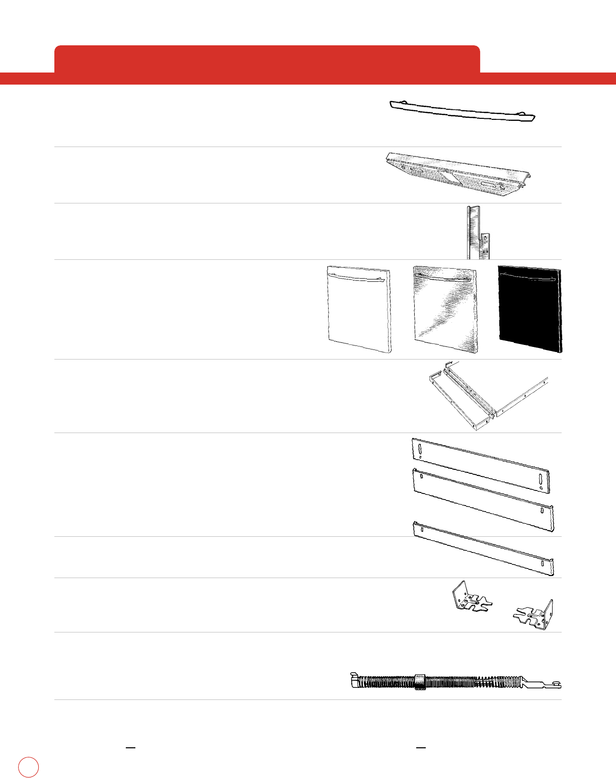 inner door liner, fill tube, glide rails, wash arm support spindles, wash arm lock nut)