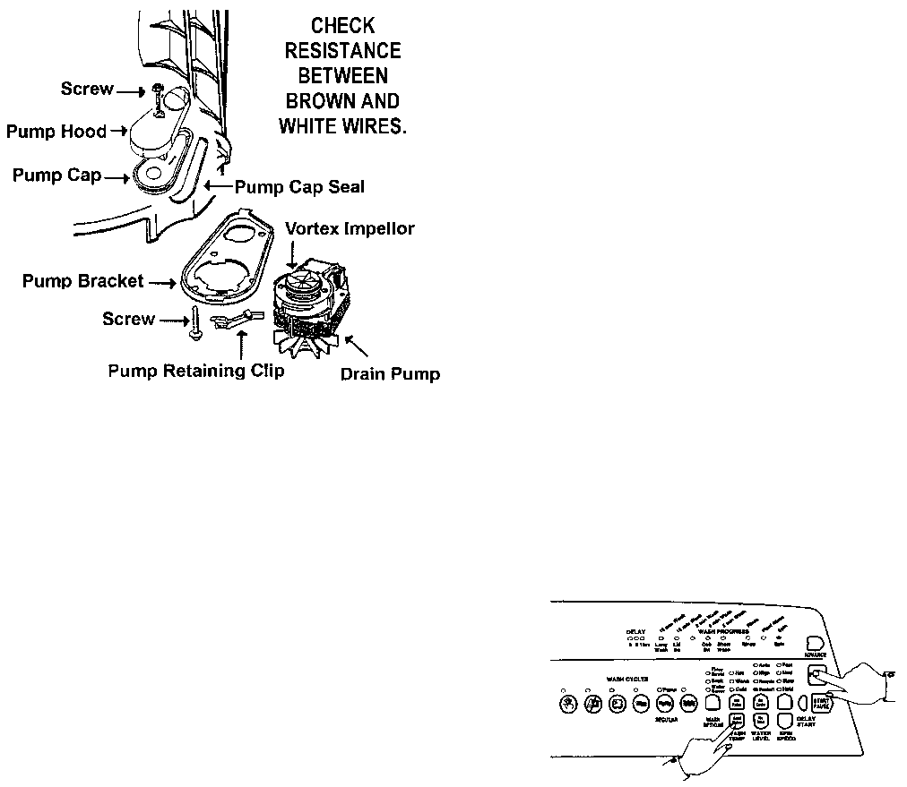 When in diagnostic mode, the FABRIC CARE button turns the drain pump on or off. This can be