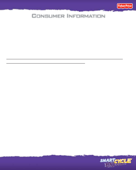 1-800-382-7470. Write to us at: Fisher-Price® Consumer Relations,