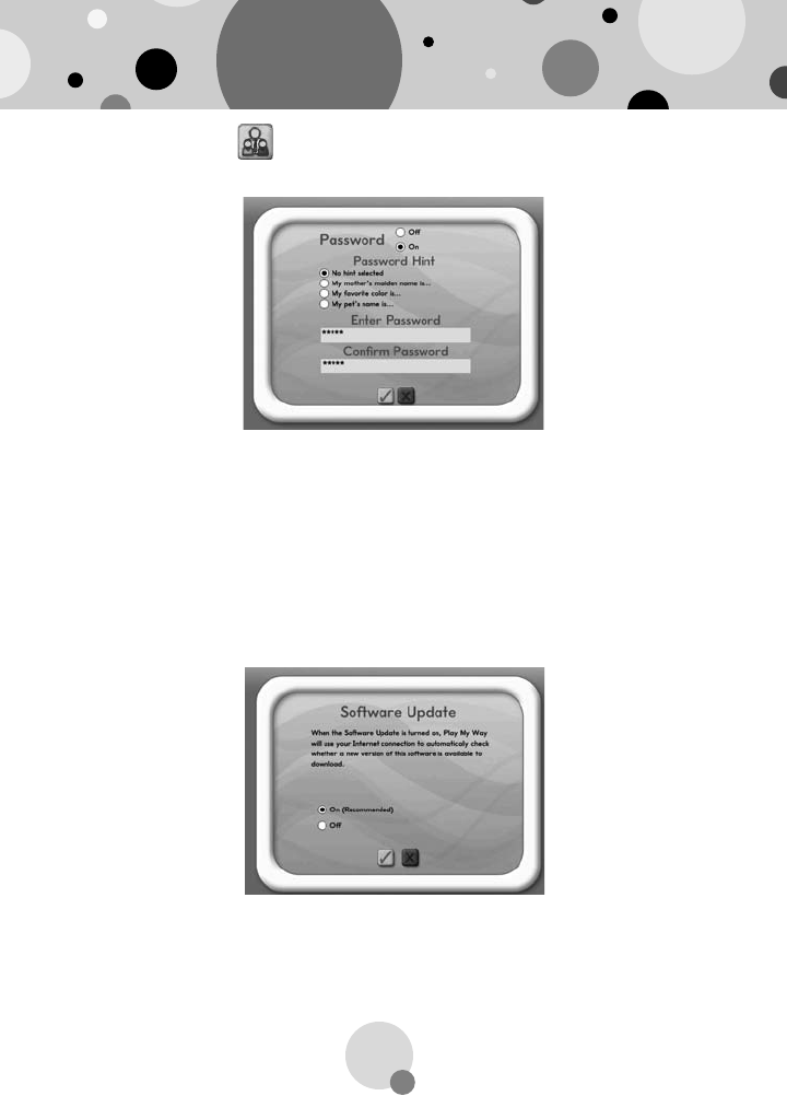 Note: If you set a password, you cannot enter Parental Controls or exit