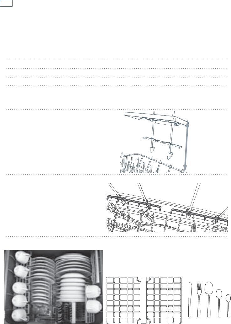 cutlery basket, adjustable racks, glass supports.