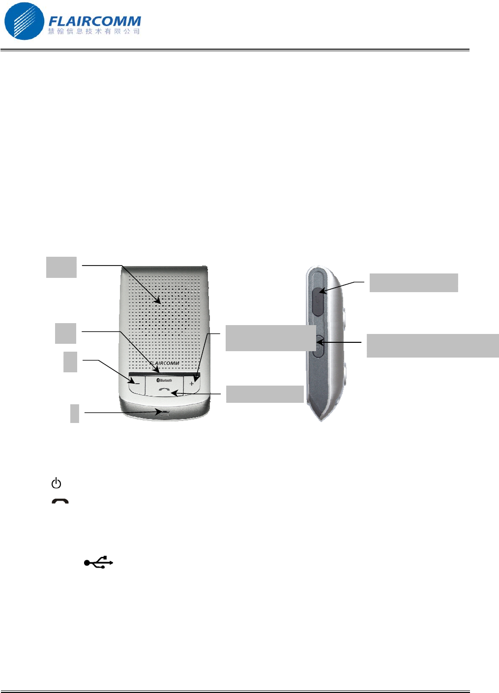 Flaircomm Technologies BTHF205 Bluetooth Hansfree Speaker User Manual