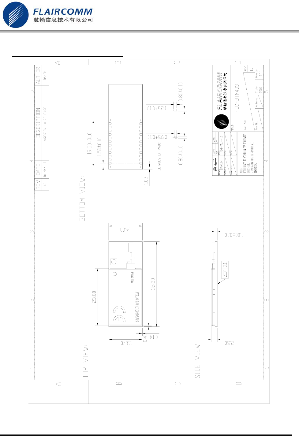 Flaircomm Technologies BTM403 Bluetooth Module User Manual FLC BTM401 DS