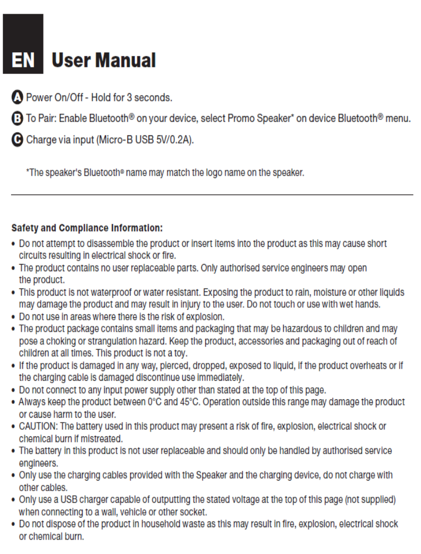 Flashbay Electronics RTJS1701 Bluetooth speaker User Manual
