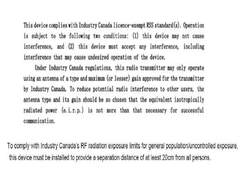 1. This Transmitter must not be co‐located or operating in conjunction with any