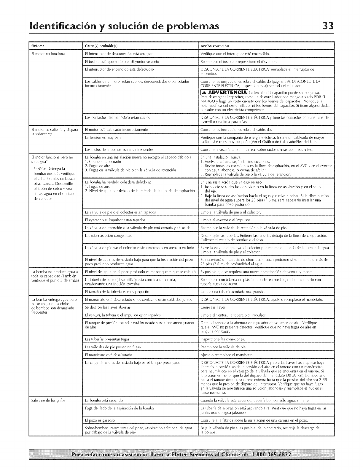 Fuga del lado de la aspiraci6n de la bomba La tuberia de aspiraci6n est_ aspirando aire. Verifique que no haya fugas en las