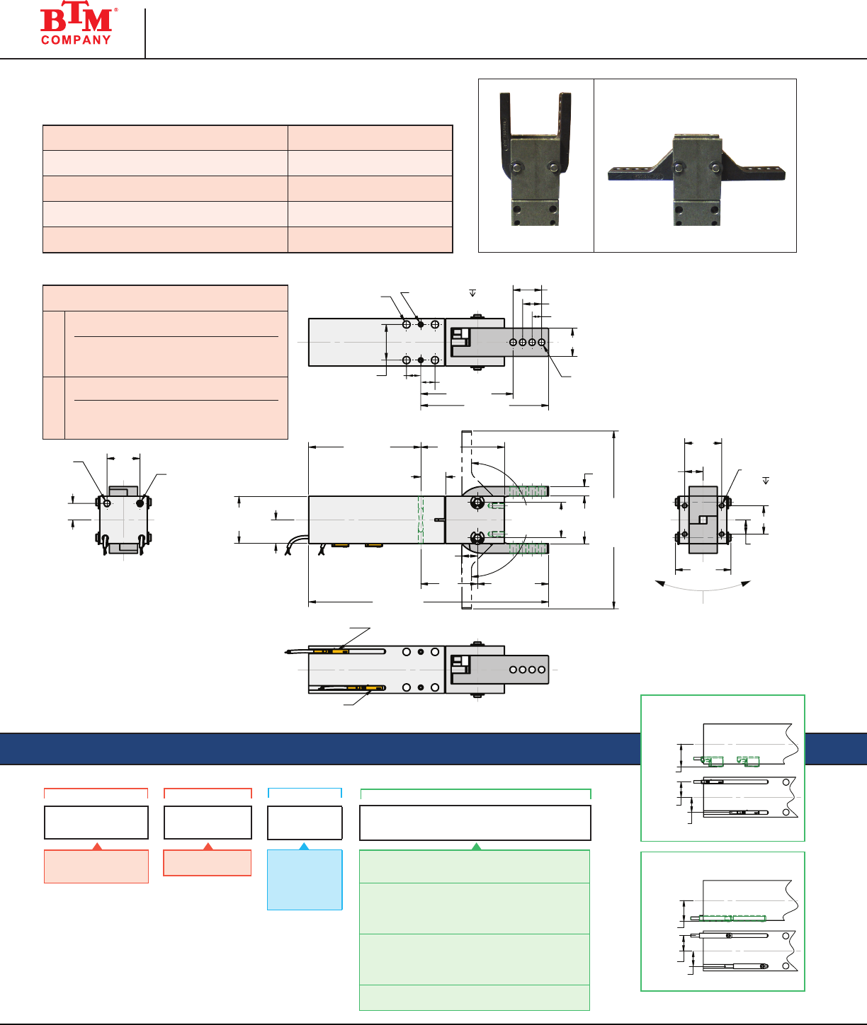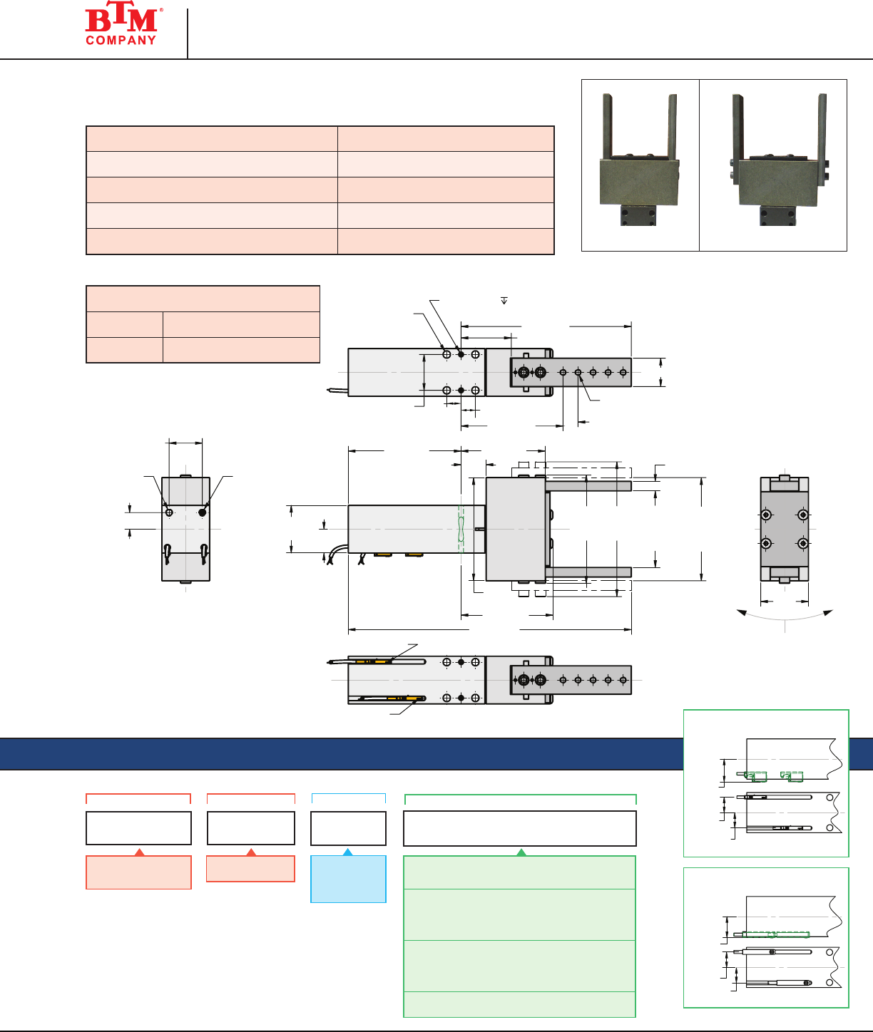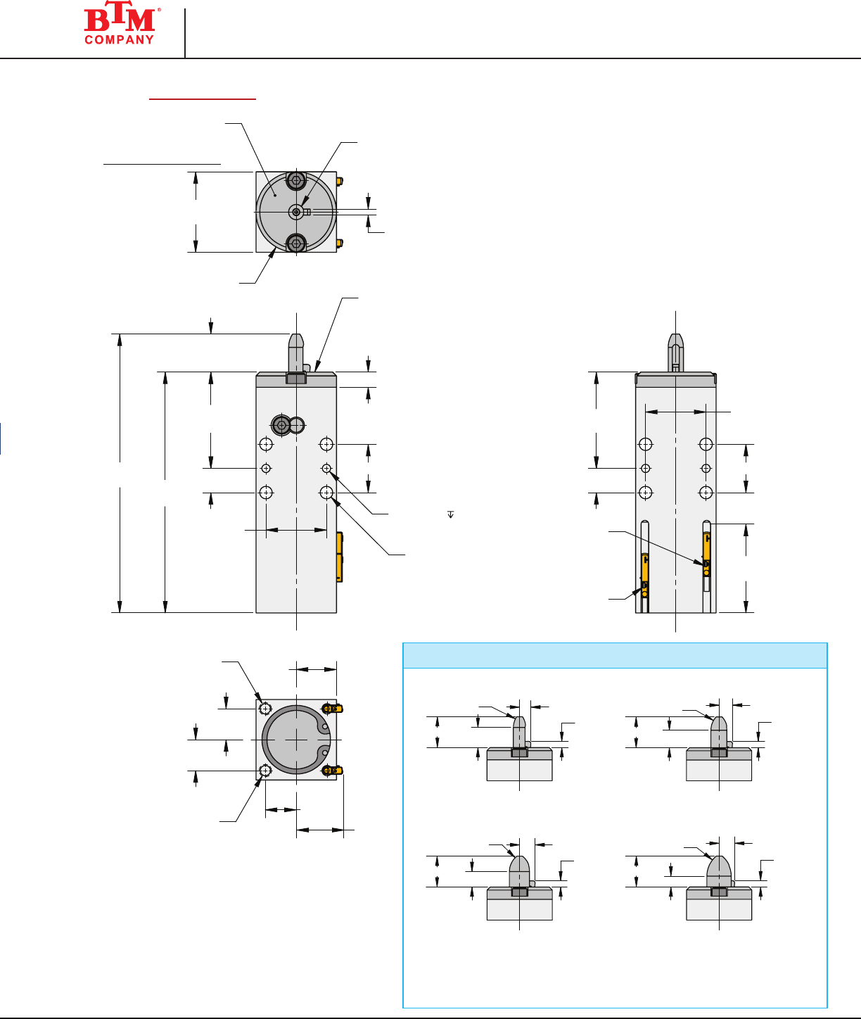 NOTE: BTM Pin Clamps can be ordered with custom designed (non-standard)