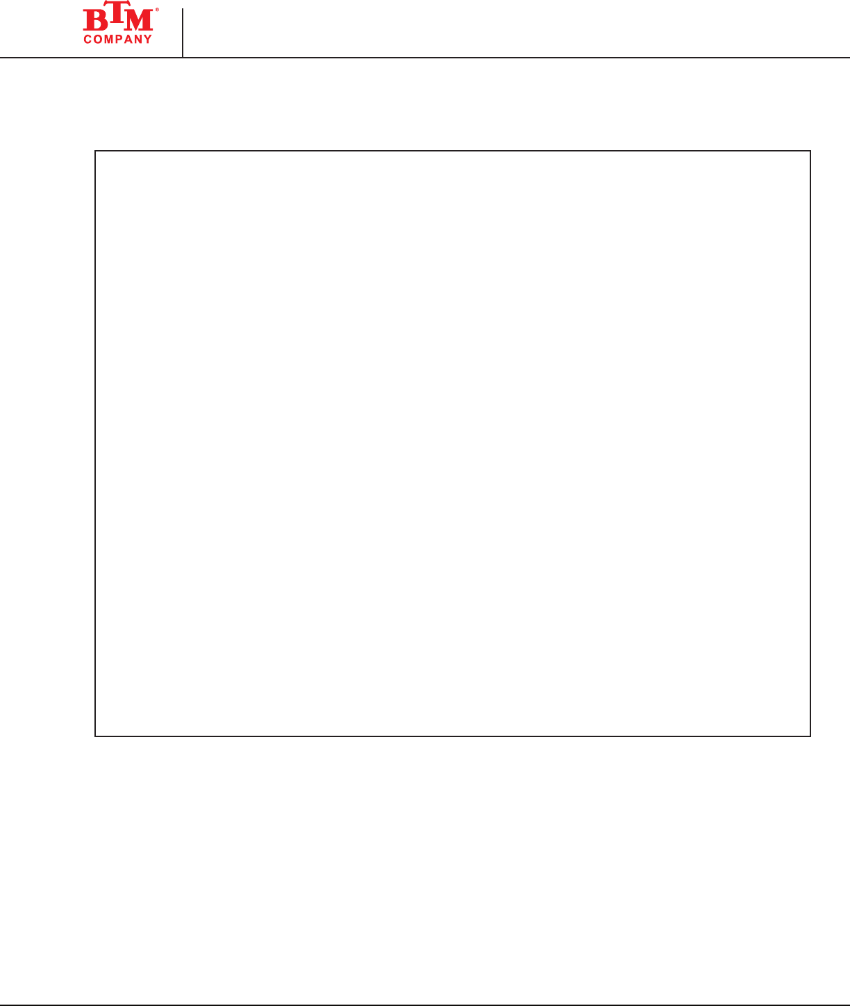 BTM CORPORATION • 300 DAVIS ROAD • MARYSVILLE, MI 48040 • Tel: 810-364-4567 • Fax: 810-364-6178 • www.BTMcorp.com
