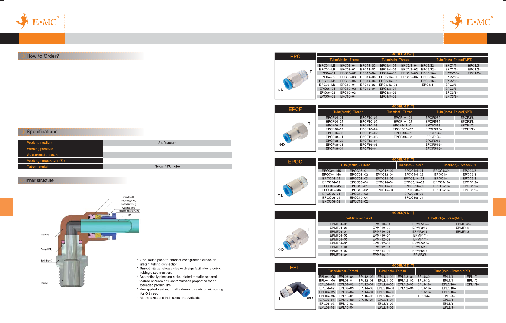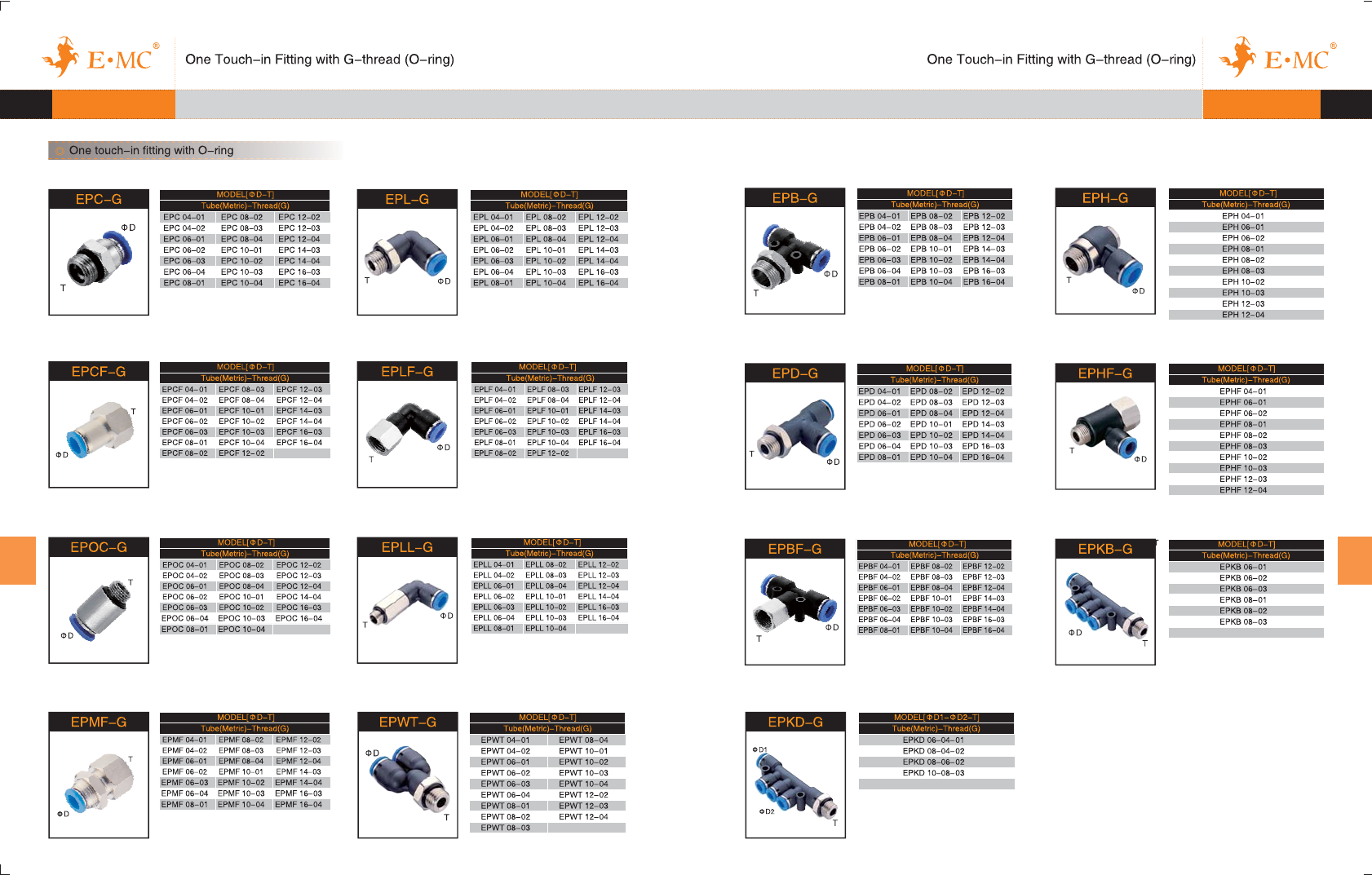 EPC Series One Touch-in Fitting, for 4 mm OD tube,G1/8 Port size ERP code EPC4 01G'' , : -