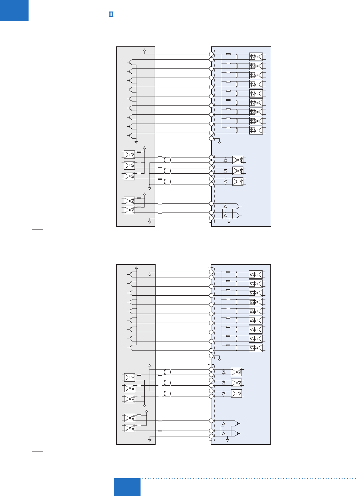 Always connect a current limiting resistor R2 to ASG and BSG and keep the current at 20 mA or less. ASG and BSG are not compatible with source logic.