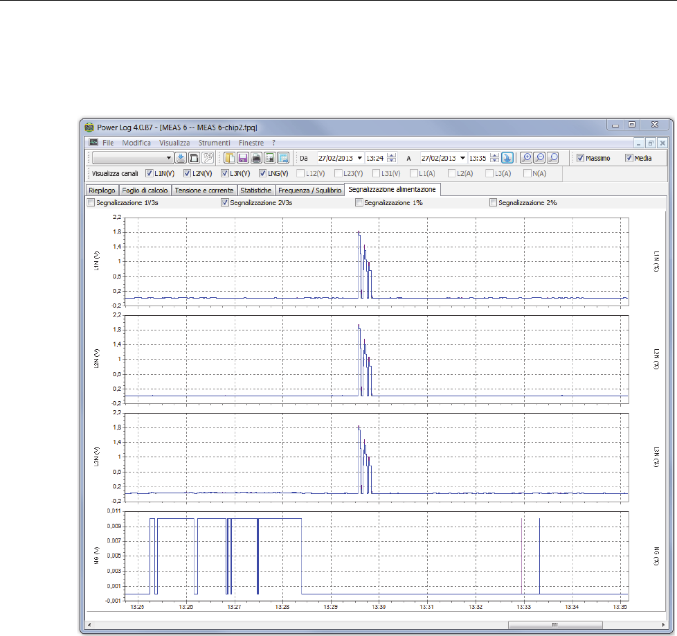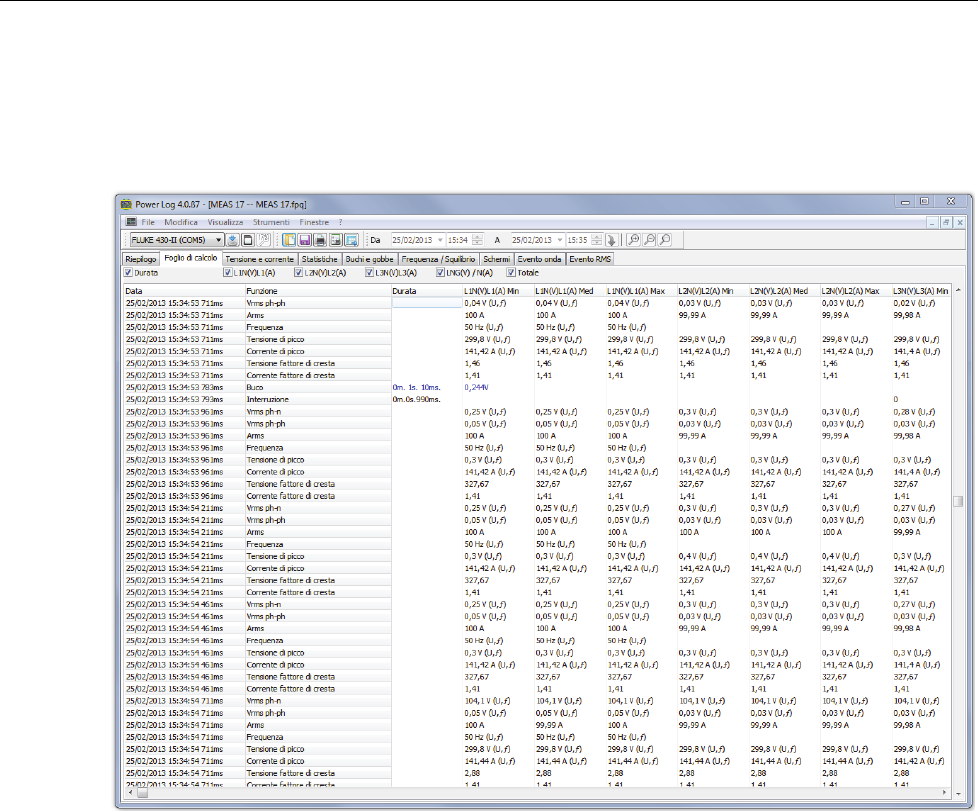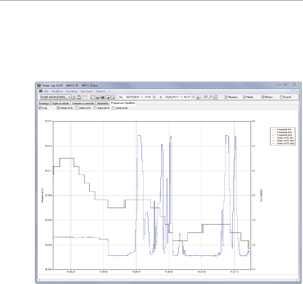 50/60 Hz. Per i segnali a 400 Hz, vengono catturati 15 cicli di dati (ad esempio,