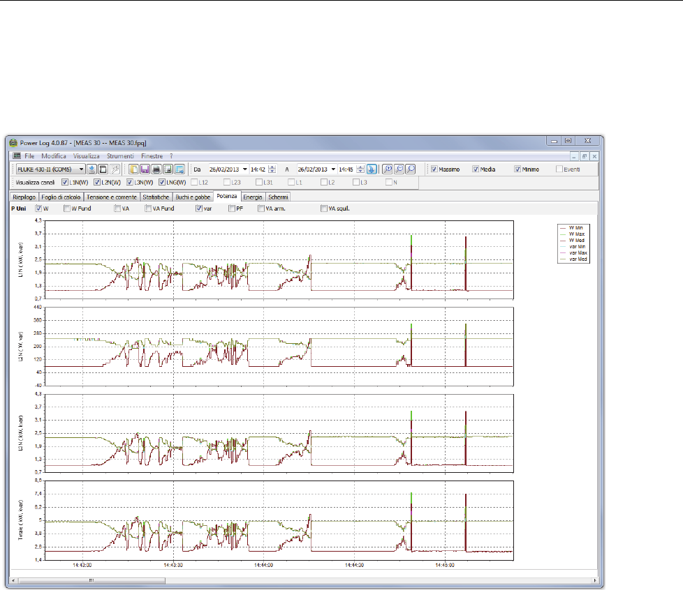 La scheda Onda di potenza mostra un massimo di 5 minuti di dati forma d'onda della